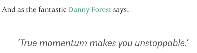 I’ll start by saying that doing everything on that list is near-impossible. There’s no one-size-fits-all answer to building True Momentum, it’s a combination of many of the following things, and what works for one person may not for another.